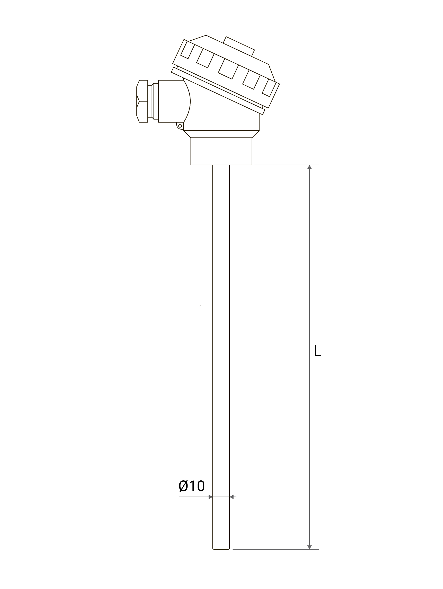 NOTE! 1-24 model is high temperature proof along whole length of the immersion part, but temperature near the industrial head must stay up to 300°С. The industrial head ensures IP54 protection only up to 120°С.