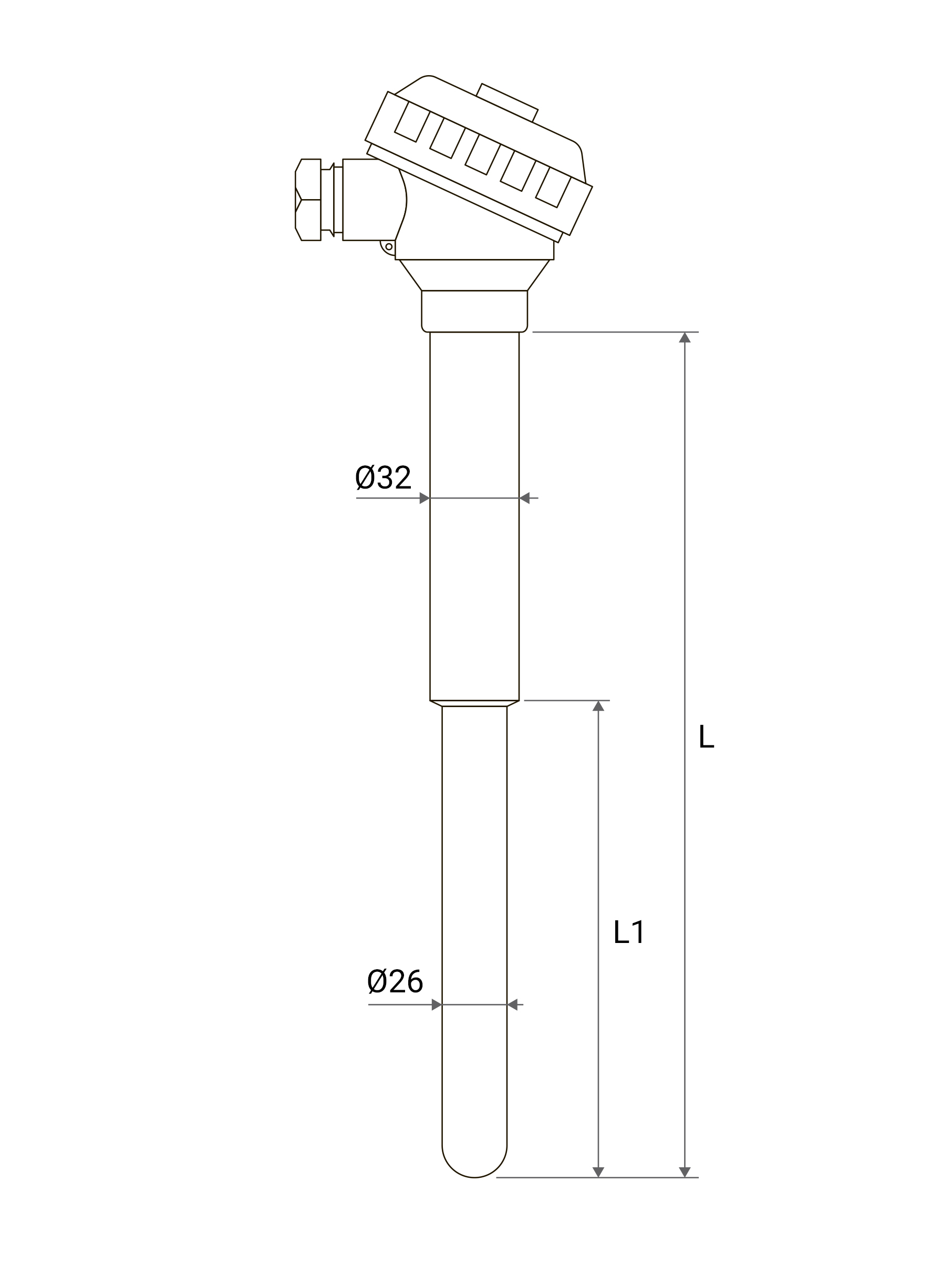 NOTE! 1-29k models is not high temperature proof along the whole immersion part. That's why only the ceramic part must stay in high temperature zone. Therefore, it's recommended to order the longer immersion part or the remote part to bring out the more fragile part of the probe from thermal impact. Temperature near the industrial head must stay up to 300°С, and near the transition from steel 321 to ceramic - up to 800°С. The industrial head ensures IP54 protection only up to 120°С.