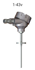 1-43 and 1-43p models have a free hex fitting, 1-43n model has a welded hex fitting, which is welded to the sheath. 1-43p model has a spring-loaded free hex fitting to ensure tight compression of probe's sheath to the measuring surface. 1-43v model has a flange.