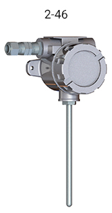 Explosion proof temperature probes are designed to measure temperature of liquid and gas-like explosive environments, and temperature of solid items, that are stay in a explosive zone. 1-43, 1-44, 2-46, 2-48, 2-48а, 2-48m models have Exd explosion proof type (explosion proof design). 1-43, 1-44 series have AX aluminium industrial head, 2-46, 2-48 series - AIX. Each model consists an explosion proof cable gland to ensure Exd level of explosion protection.