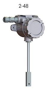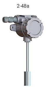 2-48, 2-48а and 2-48m models consist a MI cable. That's why it may be bent in any direction and have length of the immersion part up to 20 meters. 2-48, 2-48а and 2-48m models are mounted to the measuring surface using a screw (2-48) and a clamp (2-48а, 2-48m).