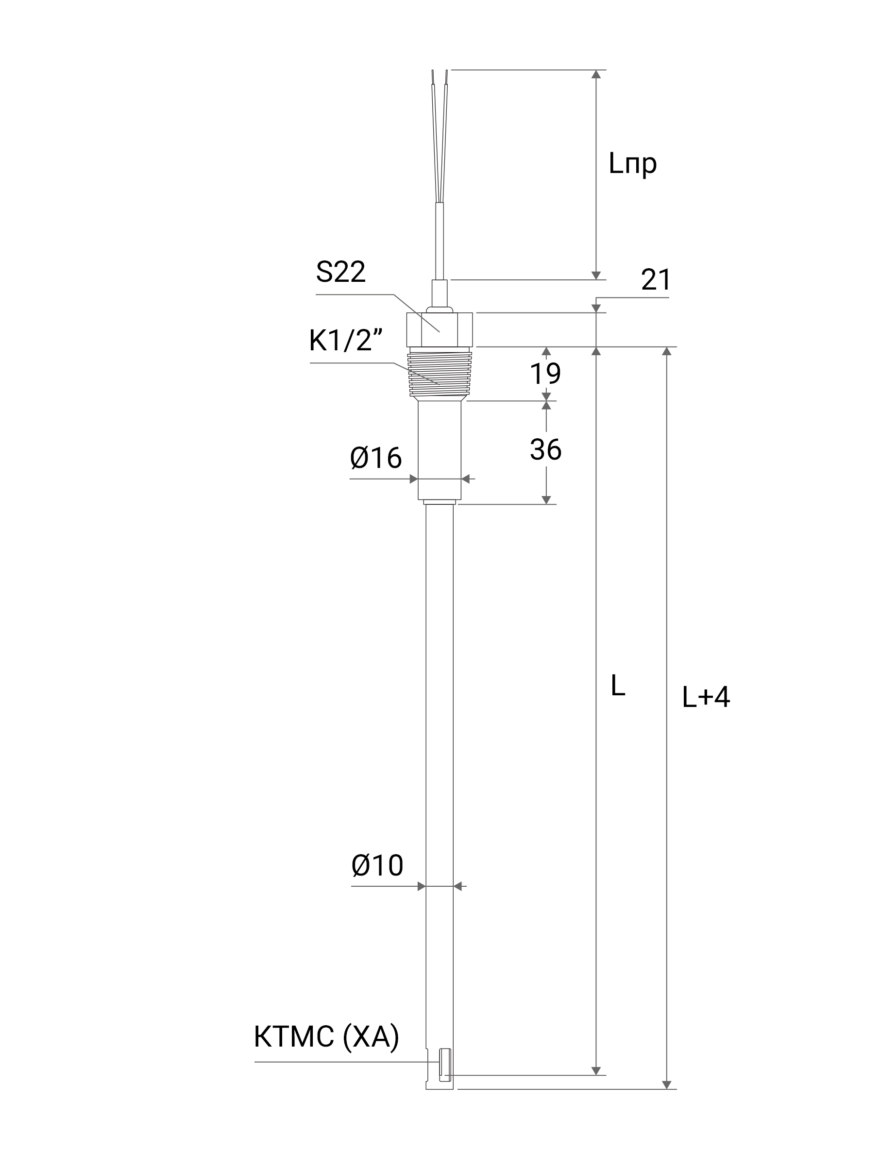 | Pins | КК (polyamide insulation, 0,75 mm² section), L wire = 150 mm |