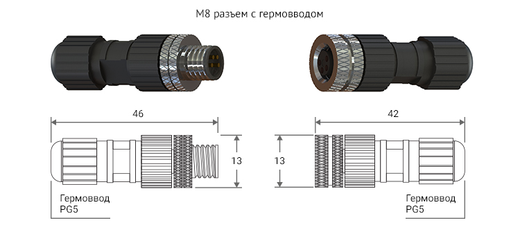 В наличии имеются пятиконтактные разъемы М8. Поставляются в комплекте (мама+папа).