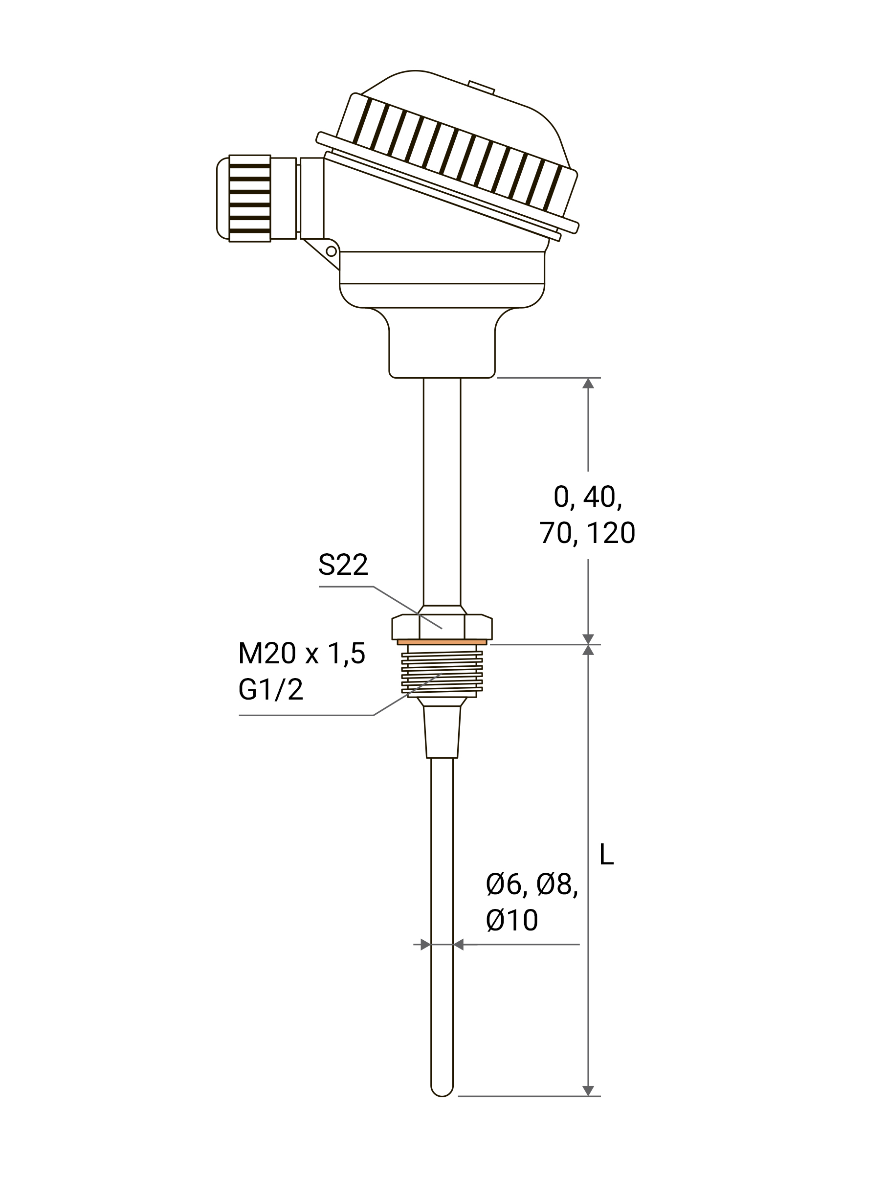 Довжина монтажної частини, L, мм 40, 60, 80, 100, 120, 160, 200, 250, 320, 400,