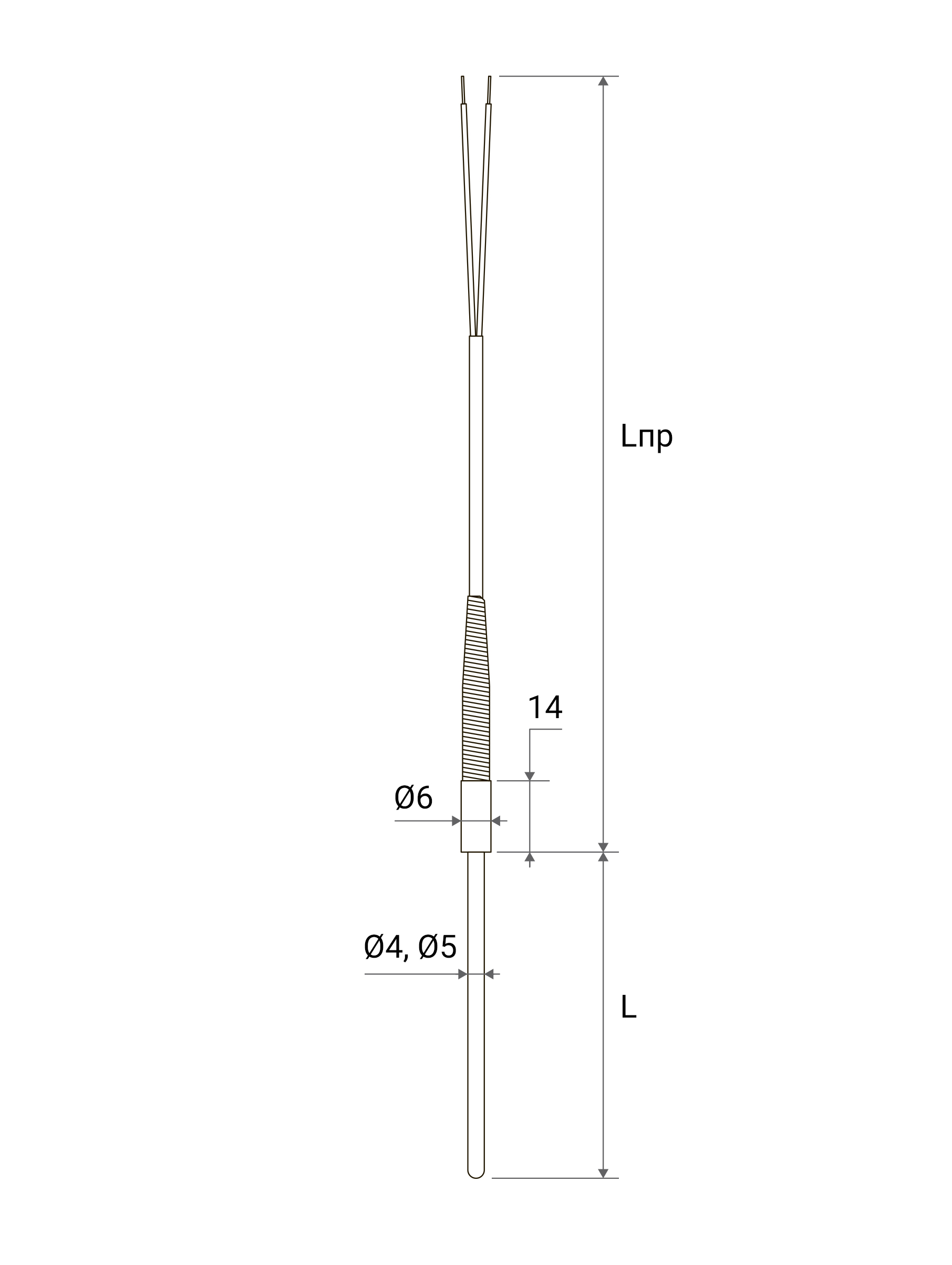 Для захисту від перелому кабелю встановлюється до 250°С силіконова термоусаджувальна трубка, вище 250°С - захисна пружина.